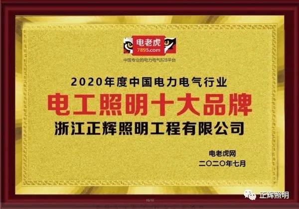近日,由電老虎網主辦的2020年中國電力電氣“電工照明十大品牌”評選結果新鮮出爐,浙江正輝照明工程有限公司一路“過關斬將”喜獲2020年電力電氣行業“電工照明十大品牌”!據悉,該項評選活動已成功舉辦5年,每年都會吸引超百萬人次參與,在業內具有廣泛影響力。